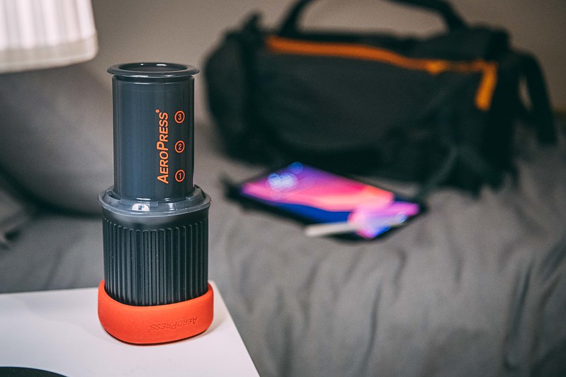 Najnowsza wersja zawiera mniej filtrów, nie ma stojaka na filtry oraz lejka, który jak z grup kawowych wiemy ma przeróżne, przeciekawe zastosowania w życiu ich właścicieli. Jest w stanie zmieścić +/- 200 ml wody, tak jak i Clear. Info dla tych, dla których podczas podróży liczy się każdy centymetr – w klasycznym Aeropressie mieszczą się młynki takie jak Rhinowares, Timemore mini (choć ten pomimo małego rozmiaru waży aż 600 g), a także Porlex Mini. O tym, jaki młynek i filtry do AeroPressa wybrać pisaliśmy szczegółowo w tym artykule.