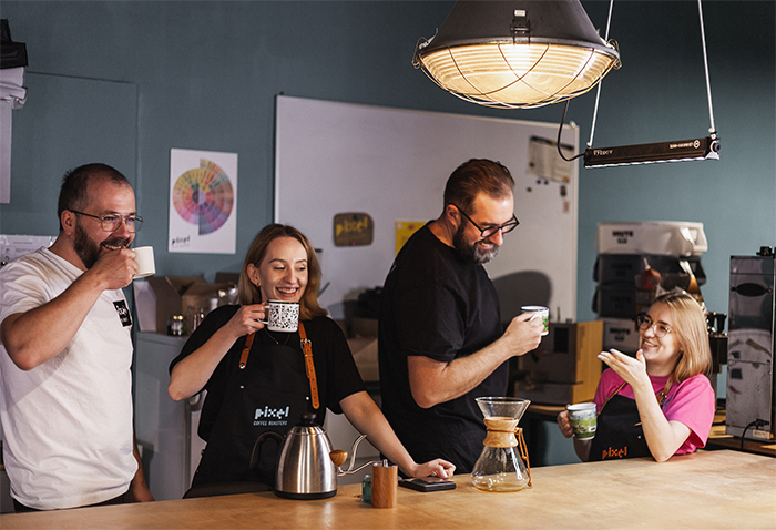 Właścicielami poznańskiej palarni PIXEL, w której wypalane są kawy dla Świeżo Palonej, są Jakub Stróżyński oraz Paweł Małkowski. Paweł był prowodyrem całego zamieszania, a swoją przygodę z kawą zaczął solo, z misją uświadamiania ludzi w kwestii tego, że jakość kawy ma znaczenie. Z Jakubem poznali się przez serwis społecznościowy i w 2010 roku rozpoczęli współpracę. 12 lat później postanowili pójść krok dalej i otworzyć PIXEL – palarnię kawy, która powstała w ciągu 7 dni ciężkiej pracy od rana do wieczora – począwszy od wyburzania ścian, skończywszy na wyposażeniu. Aby przedstawić Wam tę stworzoną w tydzień a następnie rozwijaną do dzisiejszego dnia palarnię i pokazać kulisy jej działania, zadaliśmy kilka pytań ludziom, którzy tworzą to miejsce.